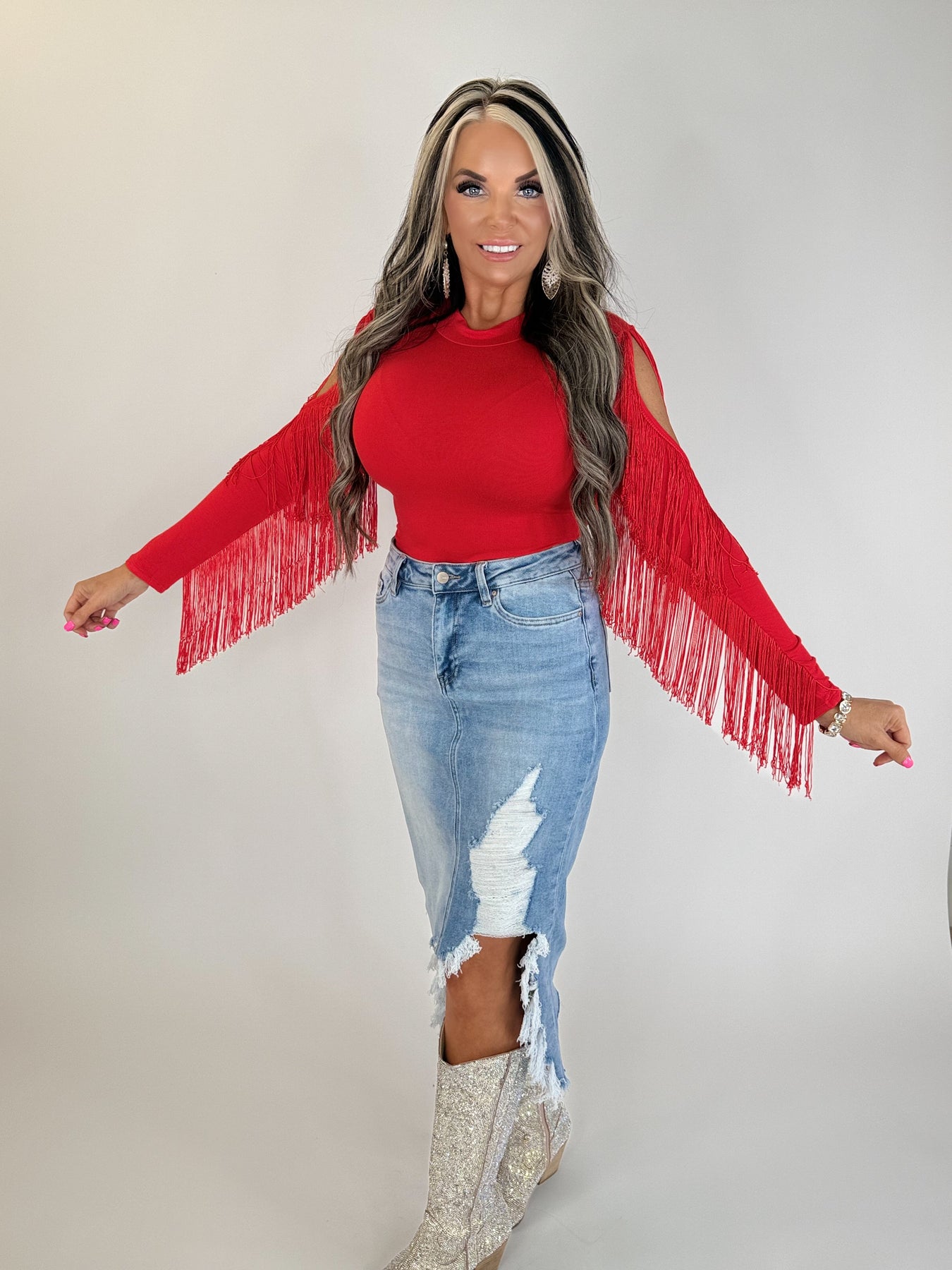 This one is for the girls who don’t do basic ❤️ The Firestarter Fringe Top is bold, flirty, and made for center stage. Featuring dramatic fringe detailing and a flattering fitted shape, she moves with you and brings all the western glam vibes. Perfect for concerts, girls’ nights, or when you just feel like being a little extra.