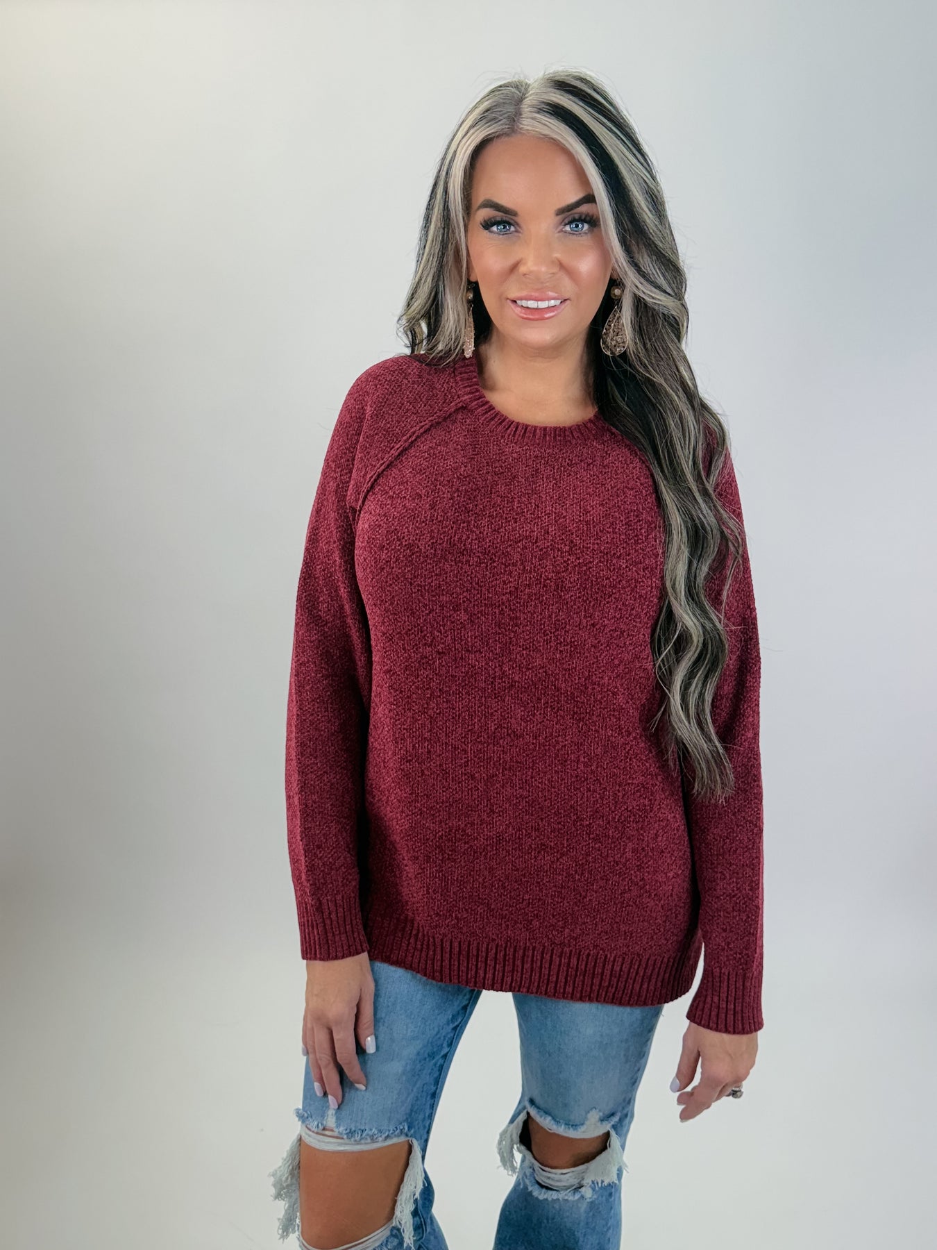 PERFECTLY YOU CHENILLE RAGLAN SWEATER Burgundy