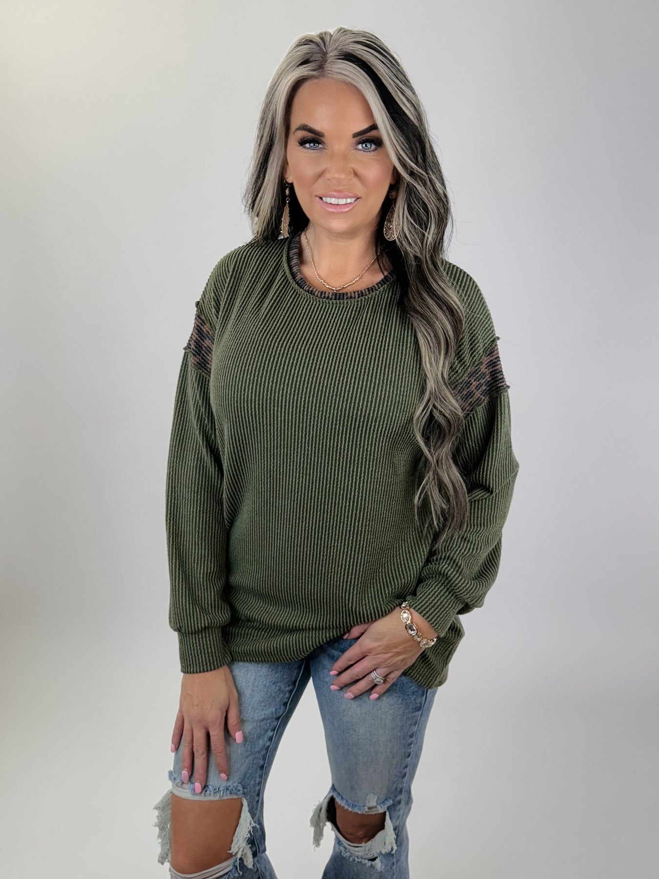 Door buster Olive Contrast Ribbed Top