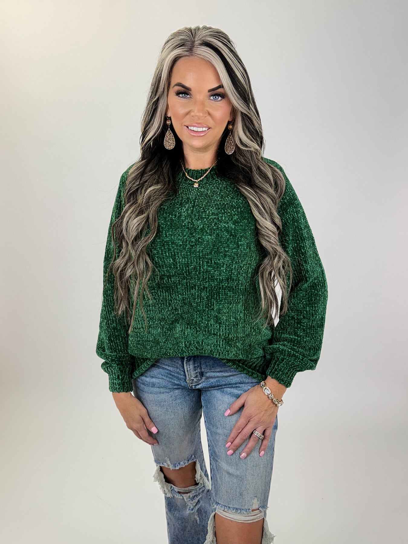FEELS LIKE A BLANKET!! This luxurious chenille pullover sweater combines comfort and style with its incredibly soft chenille fabric construction. Features a classic crew neckline with ribbed detailing, long sleeves, and a relaxed oversized fit that flatters all body types. The ribbed cuffs and hem provide structure while maintaining the cozy, loose silhouette.