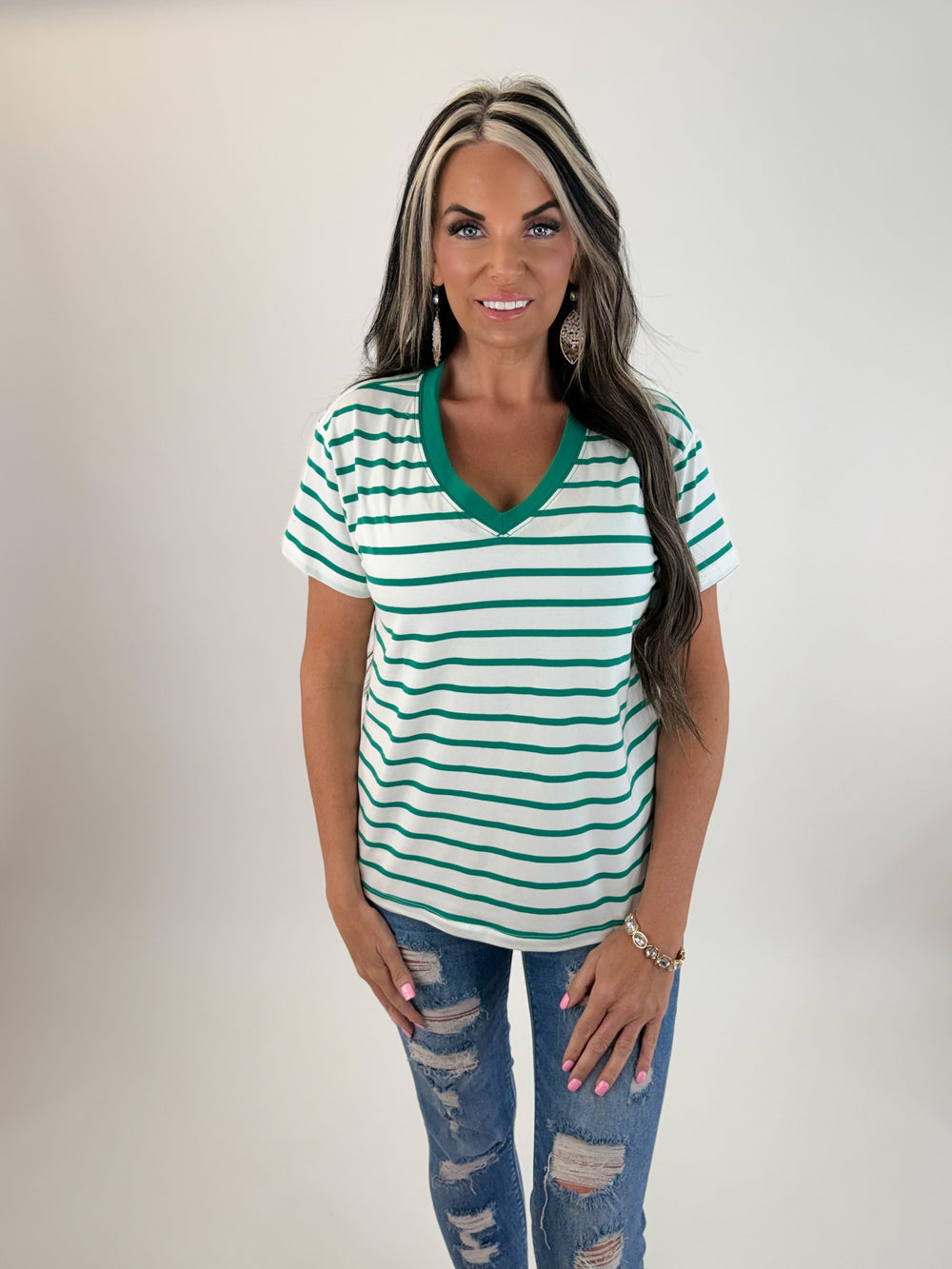 Lucky Girl Striped V-Neck Tee