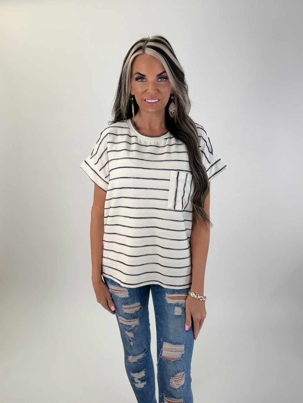 Classic Charm Striped Pocket Top